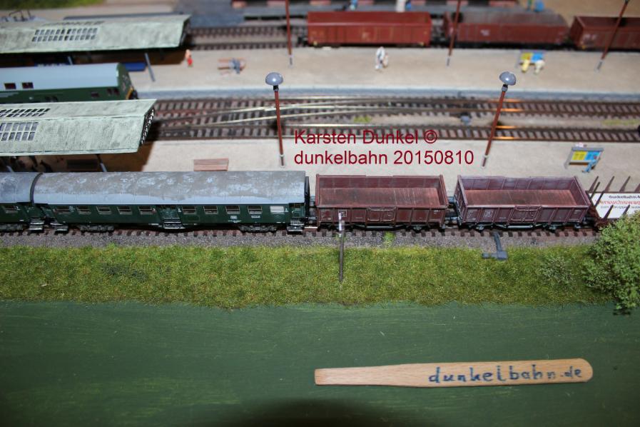 PmG am Bahnsteig Bf Neuental und Entkuppelkeil (Fremo-N-Treffen Stöllnitz 2015)